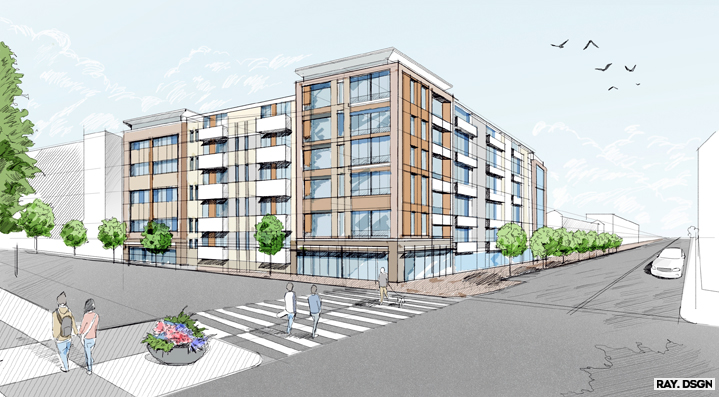 그림자와 명암처리를 해주고, 나무, 사람, 페이빙(포장재) 등 세부적인 표현을 해주면 어느덧 밑그림이 완성이 됩니다.